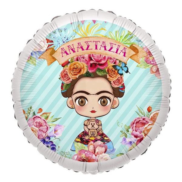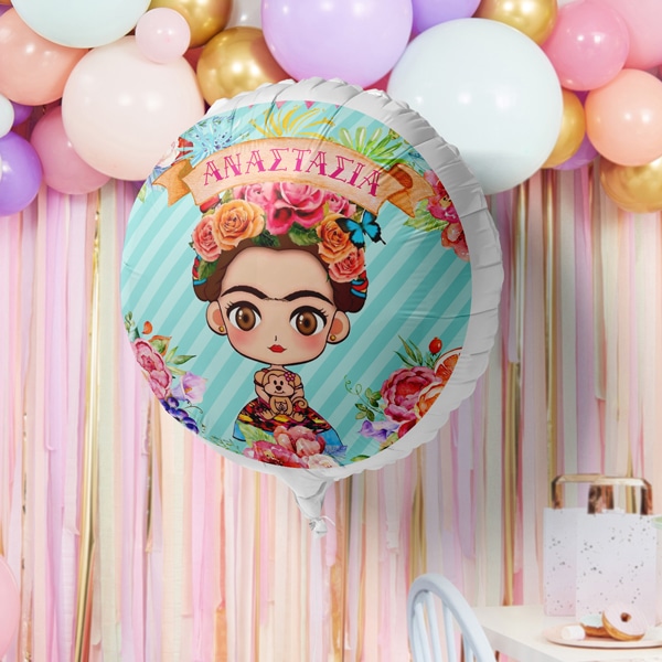 Εντυπωσιακό 18″ Μπαλόνι Foil Tυπωμένο Frida Kahlo Στρογγυλό και με το όνομα της επιλογής σας τυπωμένο επάνω. Διακοσμήστε μοναδικά τη βάπτιση ή το πάρτι σας!