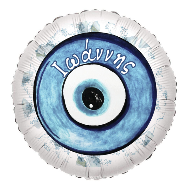 Εντυπωσιακό 18″ Μπαλόνι Foil Tυπωμένο Ματάκι Στρογγυλό και με το όνομα της επιλογής σας τυπωμένο επάνω. Διακοσμήστε μοναδικά τη βάπτιση ή το πάρτι σας!