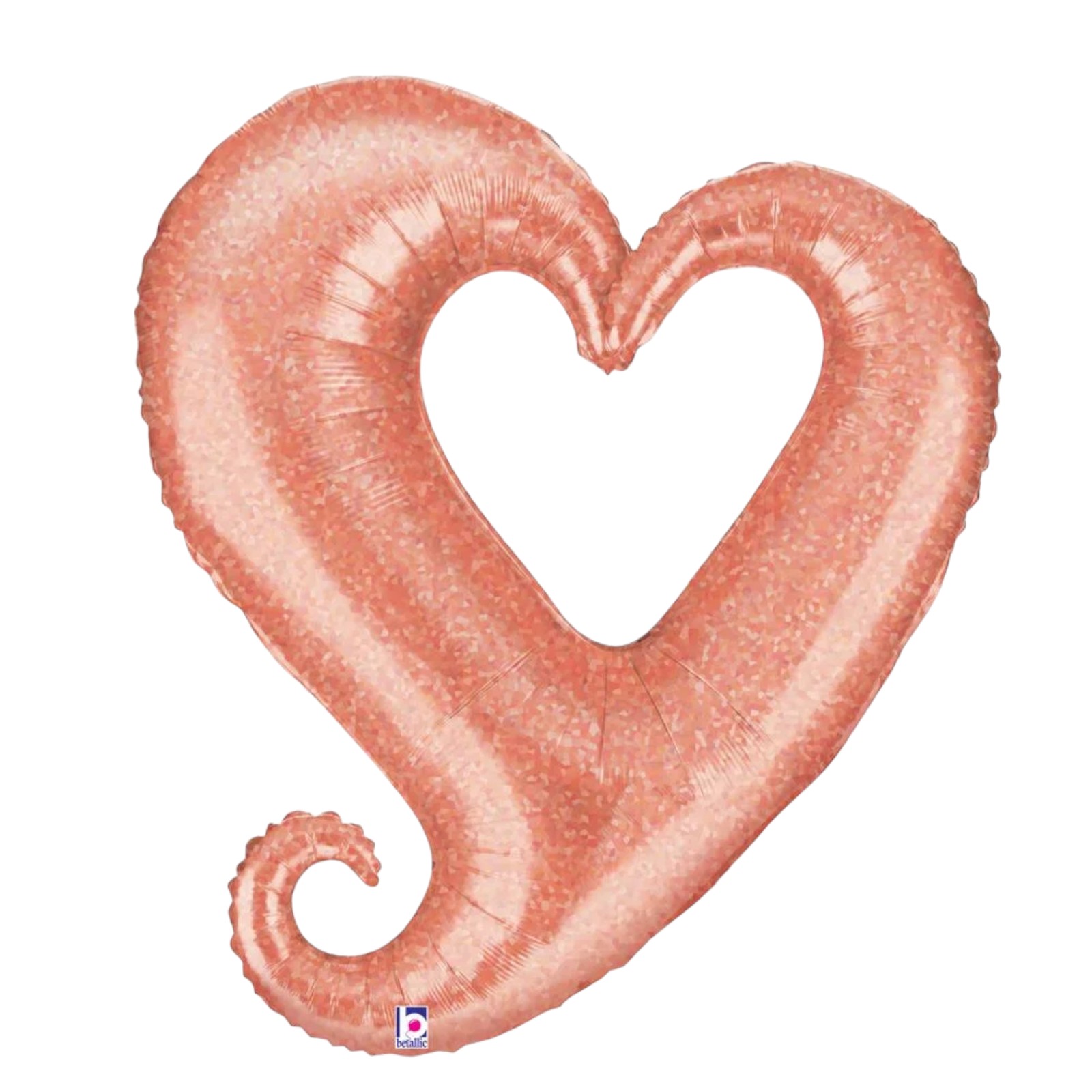 Λαμπερό μπαλόνι σε σχήμα καρδιάς με ιριδίζον ροζ-χρυσό χρώμα, ιδανικό για γενέθλια, γάμους ή ρομαντικούς στολισμούς. Κατάλληλο για αέρα ή ήλιον, χαρίζει κομψότητα και λάμψη σε κάθε διακόσμηση!
