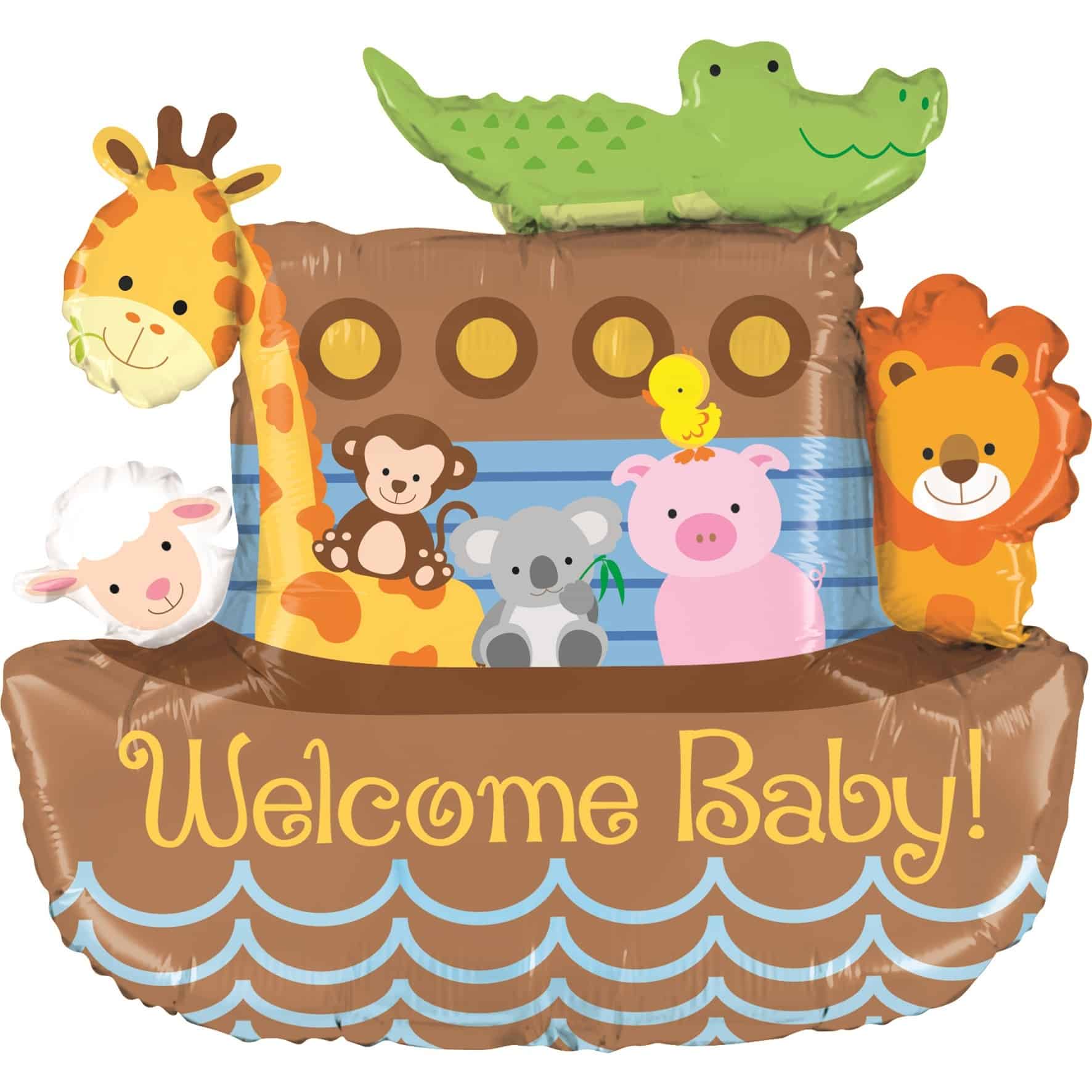 Μεγάλο μπαλόνι Κιβωτός του Νόε με χαριτωμένα ζωάκια και μήνυμα Welcome Baby!