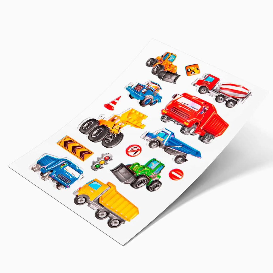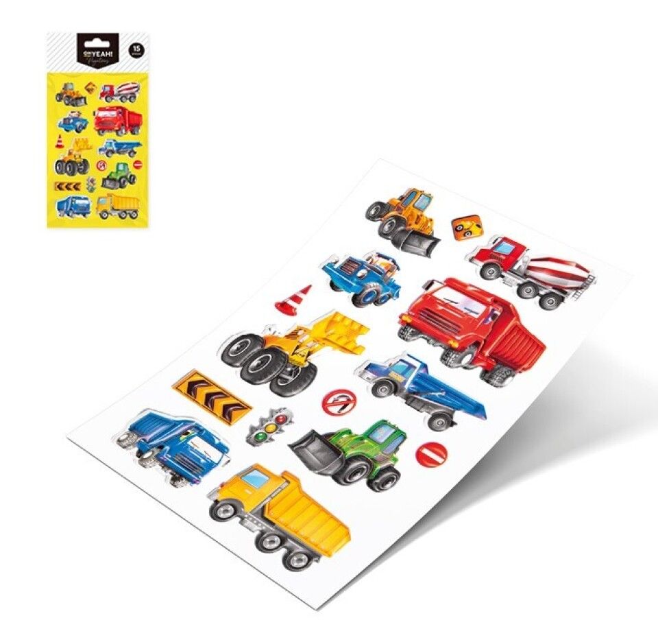 Θεματικά αυτοκόλλητα Εργοτάξιο, που περιλαμβάνουν φορτηγά, σκαπτικά μηχανήματα και σήματα.