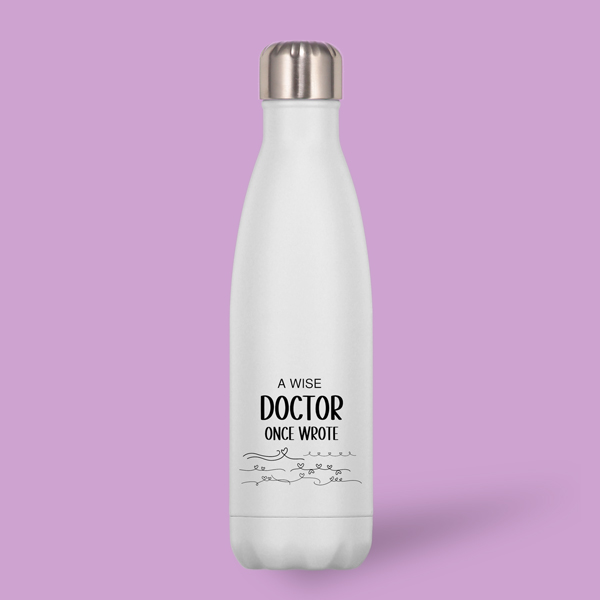 Μπουκάλι Θερμός Για Γιατρό – A Wise Doctor. Από ανθεκτικό ανοξείδωτο ατσάλι, διατηρεί τη θερμοκρασία, είναι ιδανικό δώρο με ποιότητα και αισθητική, για να τιμήσετε το λειτούργημά τους.