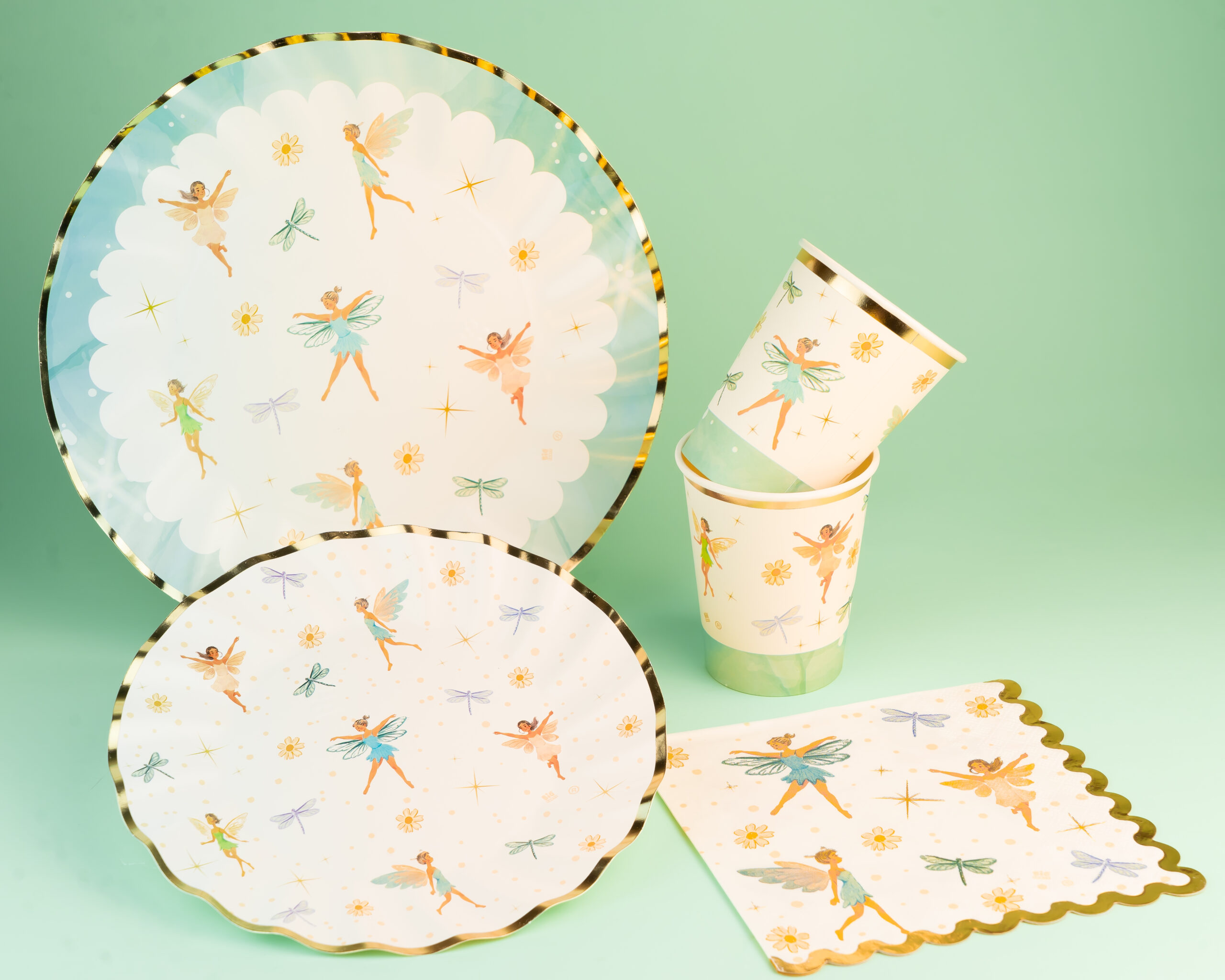 Πιάτα πάρτι με σχέδιο νεράιδες — γεμάτα μαγεία και χρώμα, για να μεταφέρουν τους καλεσμένους σε έναν παραμυθένιο κόσμο. Ιδανικά για γενέθλια και θεματικά πάρτι.