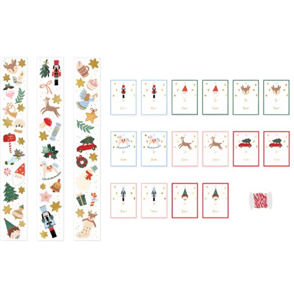 - ρολ μήκους 250 εκ. με 52 mini αυτοκόλλητα σε 36 διαφορετικά γιορτινά σχέδια