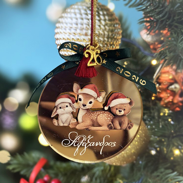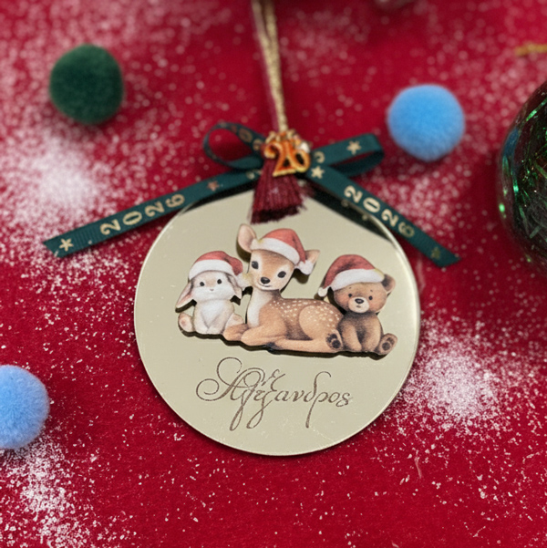 Χριστουγεννιάτικο Στολίδι Χρυσό Plexi – 3D Ξύλινα Ζωάκια με Προσωποποιημένο Όνομα