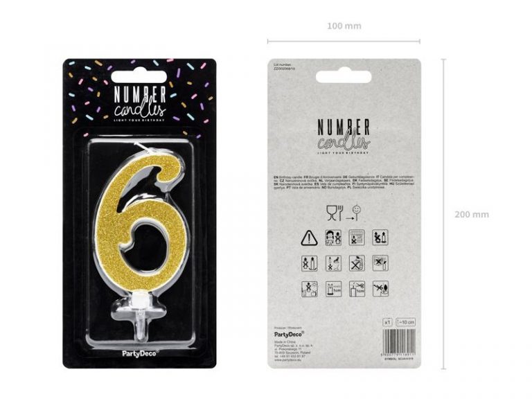 Κεράκι γενεθλίων με χρυσό γκλίτερ Αριθμός 6