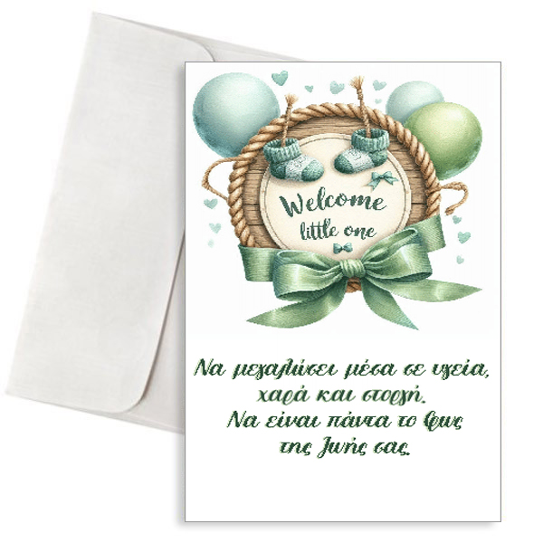 Ευχετήρια Κάρτα Βάπτισης Vintage – “Πράσινο Φιογκάκι με Ευχές!”