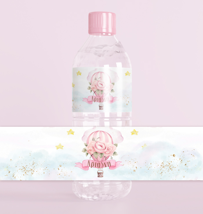 Ετικέτες για μπουκαλάκια νερού με θέμα το Αερόστατο και εκτυπωμένο το όνομα του μωρού σας.