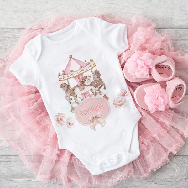 Φορμάκι για να φορά το μωράκι σας με εκτυπωμένο το όνομα και θέμα Ροζ Καρουζέλ!