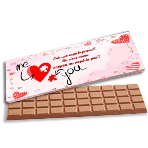 Γίγας Σοκολάτα, με μήνυμα αγάπης ‘Εσύ.. με συμπληρώνεις! Θα είσαι πάντα κομμάτι της καρδιάς μου!’, για να χαρίσετε στο αγαπημένο σας πρόσωπο και να εκφράσετε την αγάπη σας με τον πιο γλυκό τρόπο!