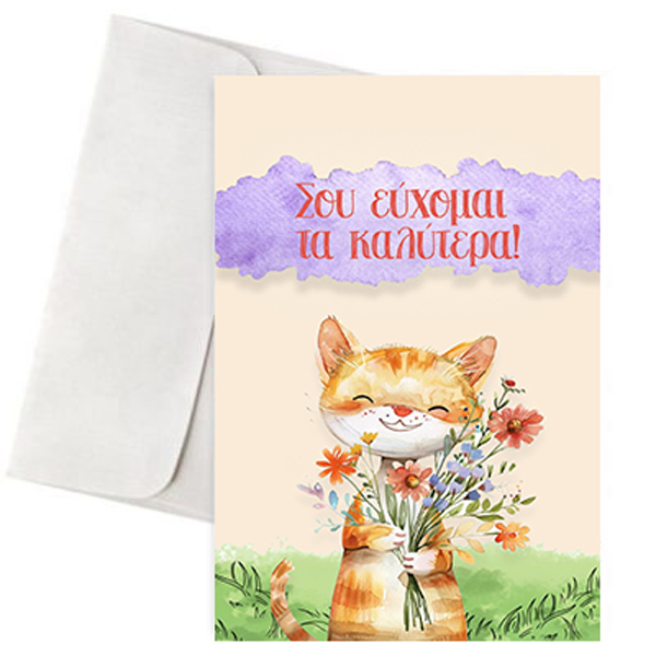 Κάρτα Αγάπης – “Γατάκι με Λουλούδια”