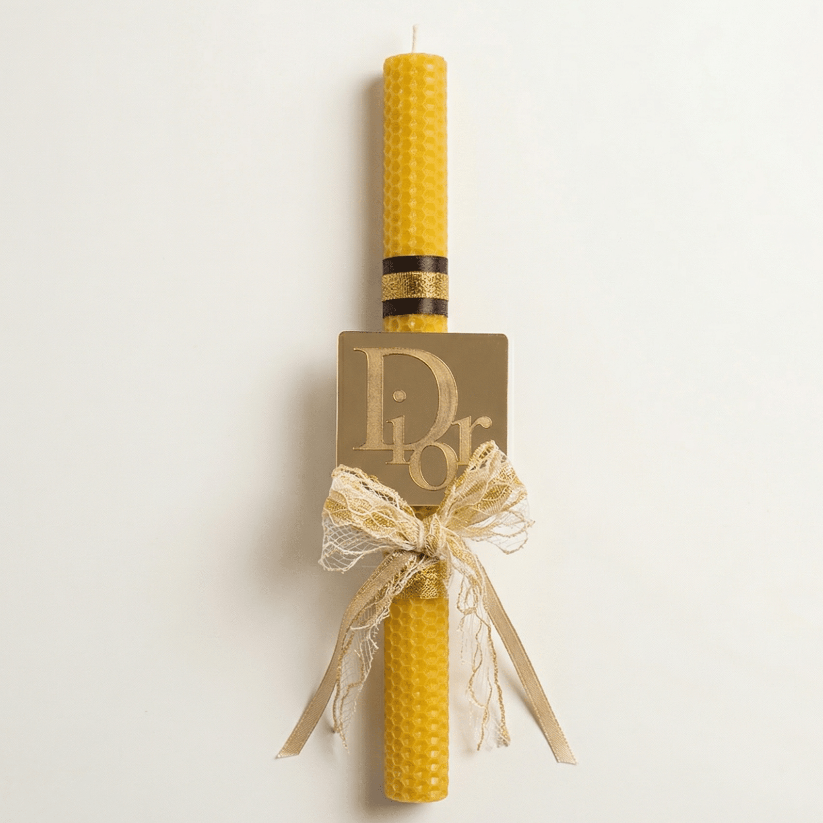 Πασχαλινή χειροποίητη Λαμπάδα Dior plexiglass χρυσό μαγνητάκι με υπέροχες κορδέλες σε ταιριαστές αποχρώσεις για να είσαι in fashion φέτος την Ανάσταση!