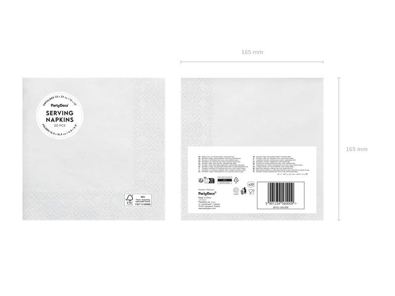 Λευκές χαρτοπετσέτες υψηλής ποιότητας, ιδανικές για κάθε τραπέζι και περίσταση. Απαλές, ανθεκτικές και απορροφητικές, αποτελούν την τέλεια επιλογή για πάρτι, εκδηλώσεις, catering και καθημερινή χρήση.