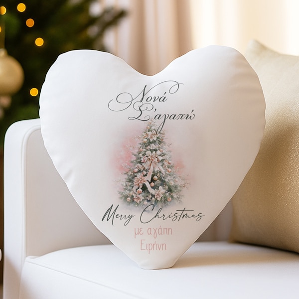 Μαξιλάρι με Χριστουγεννιάτικο σχέδιο και τυπωμένο όνομα, για να το προσφέρεις ως δώρο στη νονά και να διακοσμήσει με αυτό το χώρο της, την περίοδο των γιορτών!
