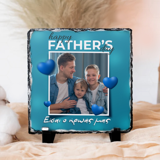 Εντυπωσιακή πέτρινη κορνίζα με αφιέρωση, ένα διαχρονικό δώρο που ο μπαμπάς σου θα θαυμάζει για πάντα! Σε αυτό το προϊόν φωτογραφίας, συνδυάζεται η σύγχρονη τεχνολογία εκτύπωσης σε ένα κομμάτι φυσικής πέτρας.