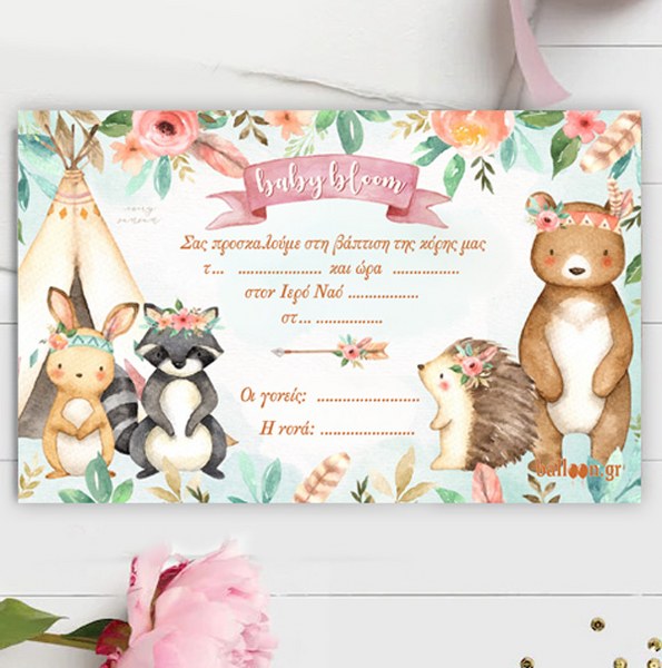 Προσκλήσεις με θέμα γλυκά Ζωάκια του Δάσους. Προσκαλέστε τους αγαπημένους σας στη βάπτιση του παιδιού σας με το πιο όμορφο προσκλητήριο!