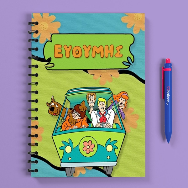 Τετράδιο – Scooby Doo Mystery Inc. με το όνομα που επιθυμείς για σένα ή για να το κάνεις δώρο για μια ξεχωριστή σχολική χρονιά! Το ιδανικό τετράδιο για καθημερινή χρήση! Σε πρακτικό μέγεθος, με ανθεκτικό σκληρό εξώφυλλο που προστατεύει τις σημειώσεις σου και κομψό σχεδιασμό για να το παίρνεις παντού μαζί σου. Διαθέτει εσωτερικές σελίδες με γραμμές, ιδανικές για σημειώσεις, λίστες, ιδέες ή καθημερινό journaling.