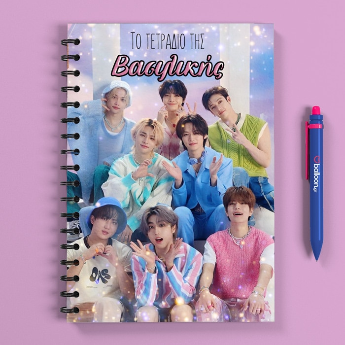Τετράδιο Stray Kids με το όνομα που επιθυμείς για σένα ή για να το κάνεις δώρο για μια ξεχωριστή σχολική χρονιά! Το ιδανικό τετράδιο για καθημερινή χρήση! Σε πρακτικό μέγεθος, με ανθεκτικό σκληρό εξώφυλλο που προστατεύει τις σημειώσεις σου και κομψό σχεδιασμό για να το παίρνεις παντού μαζί σου. Διαθέτει εσωτερικές σελίδες με γραμμές, ιδανικές για σημειώσεις, λίστες, ιδέες ή καθημερινό journaling.