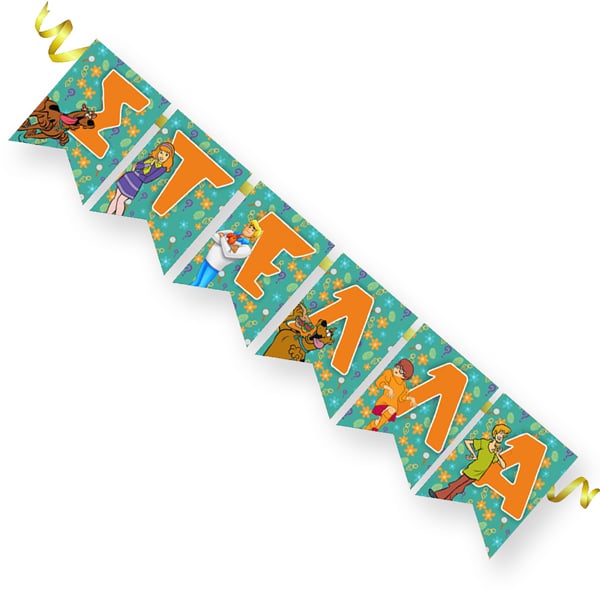 Διακοσμητικά σημαιάκια με θέμα Scooby Doo και το όνομα της επιλογής σας τυπωμένο επάνω για να στολίσετε μοναδικά τον χώρο του πάρτυ!