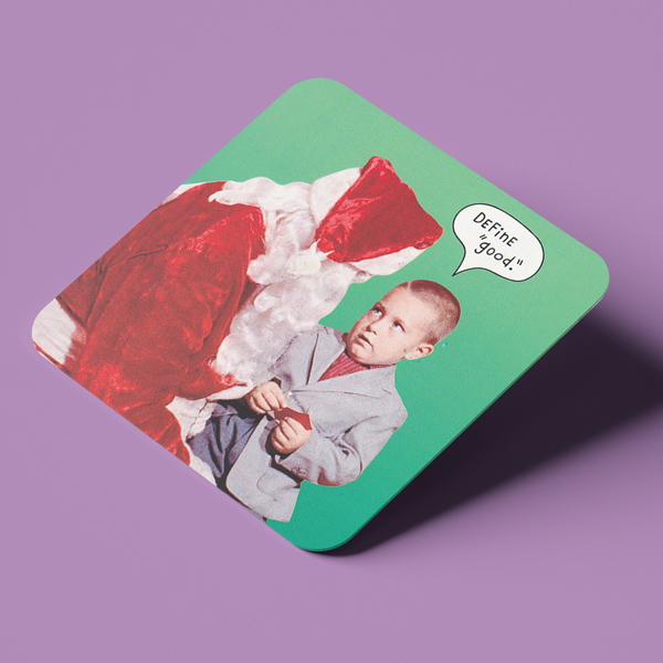Ξύλινο σουβέρ Santa Define Good, για να ακουμπάς την κούπα σου ή να χαρίσεις στον φίλο ή την φίλη που λατρεύει την περίοδο των Χριστουγέννων!