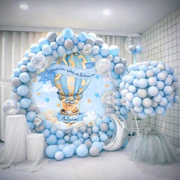 Στρογγυλή αφίσα Βάπτισης Αερόστατο Αρκουδάκι 1,30 x 1,30 m
